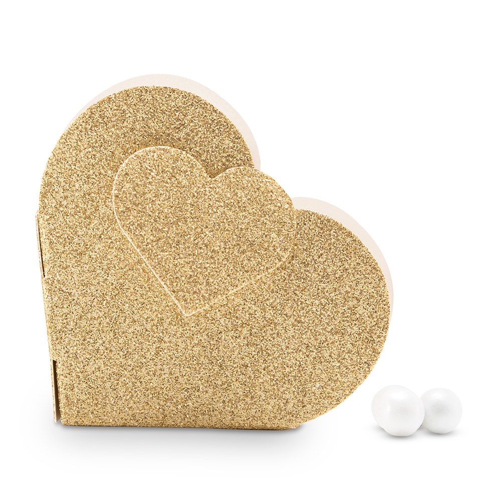 Cute As A Button Mini Favour Box With Ribbon, Gold Glitter Heart Favour Box