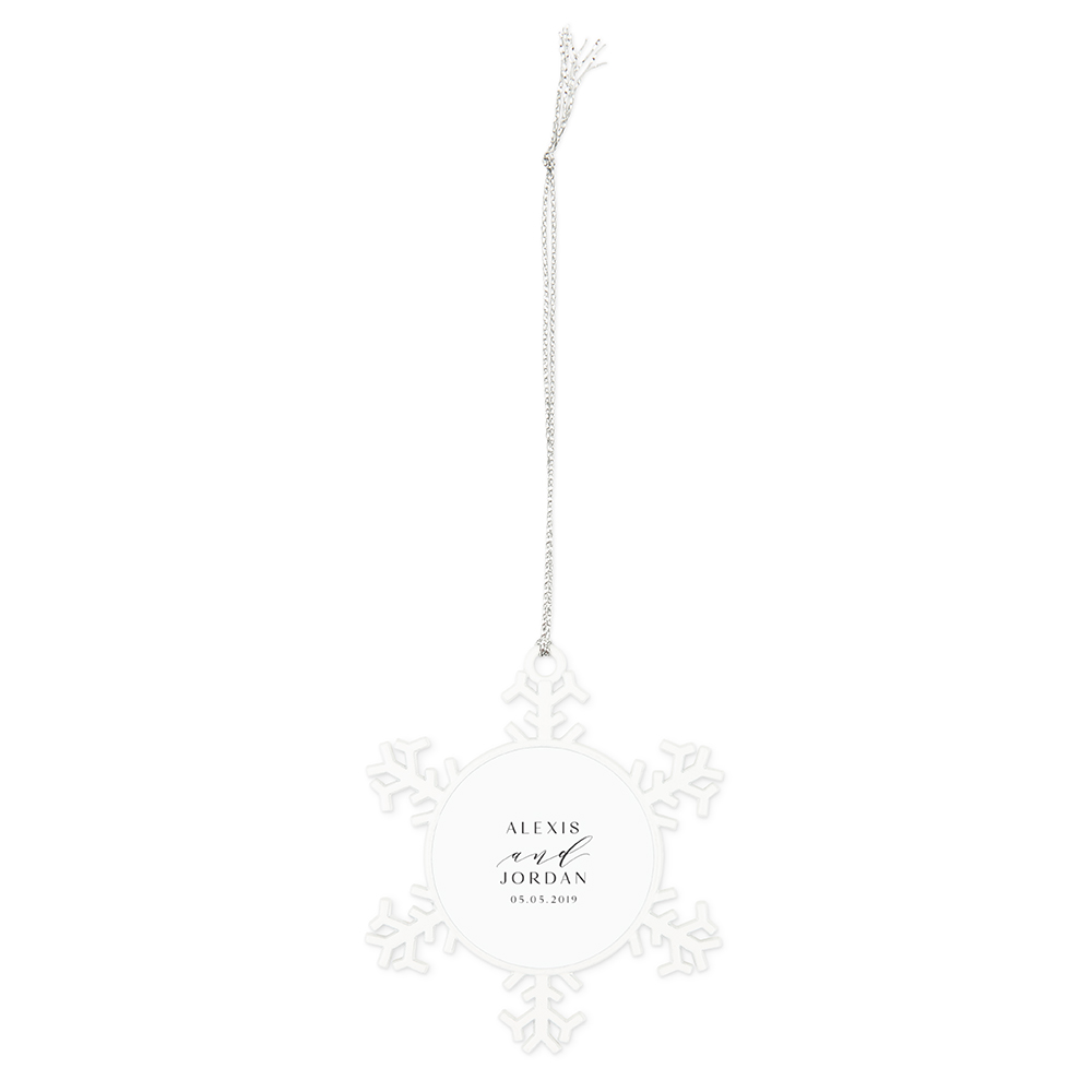 Personalized White Metal Snowflake Christmas Tree Ornament – Modern Couple