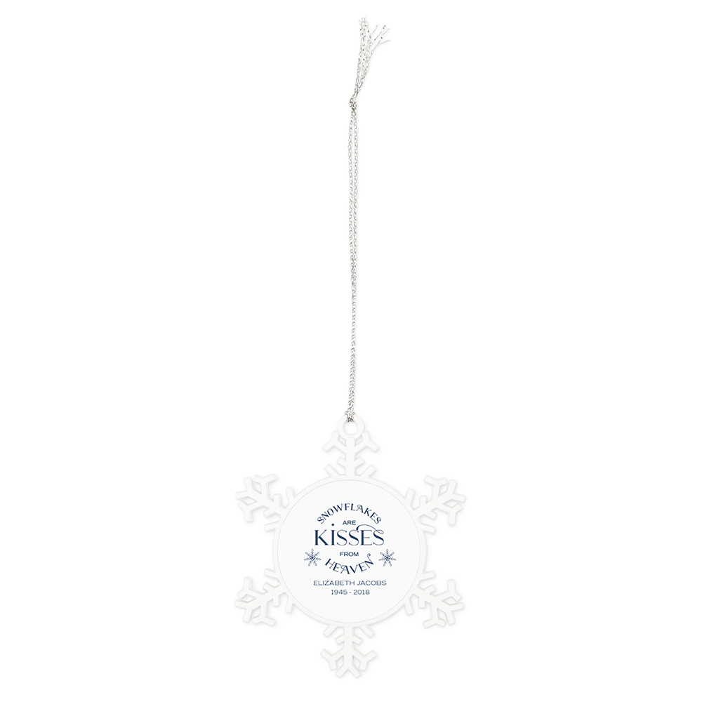 Personalized White Metal Snowflake Christmas Tree Ornament – Little Snowflake Baby Announcement, Personalized White Metal Snowflake Christmas Tree Ornament – Snowflakes Are Kisses From Heaven