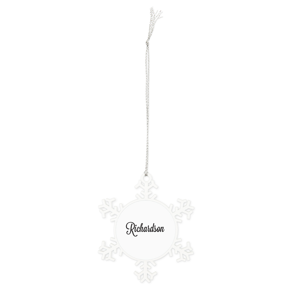 Personalized White Metal Snowflake Christmas Tree Ornament – Script