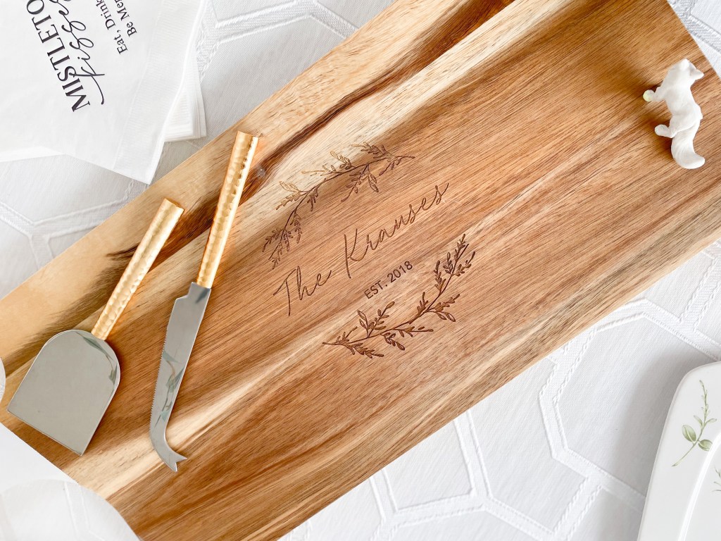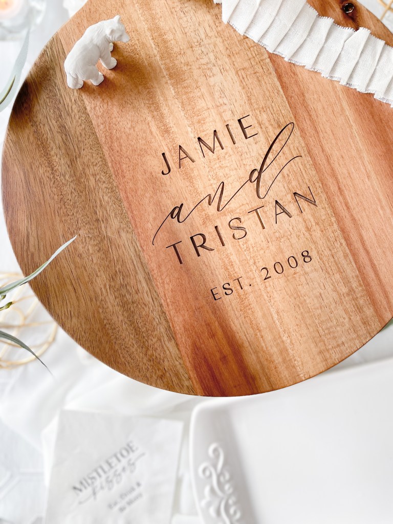 The best part of Weddingstar’s serving boards is the customization options. Use a family name, couples names, or monogrammed initials, whatever reflects your current phase of life.