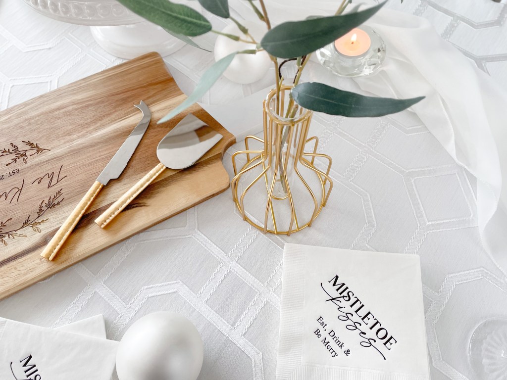 Personalized Foil Printed Paper Napkins – Mistletoe Kisses, Personalized Foil Printed Paper Napkins – Classic Christmas Happy Holidays