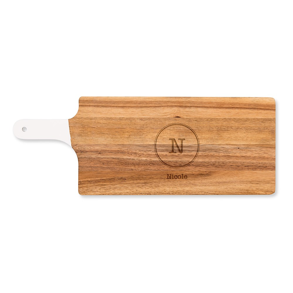 Personalized Wood & Slate Serving Board Set – Script Monogram, Personalized Wooden Cutting & Serving Board With White Handle – Circle Monogram