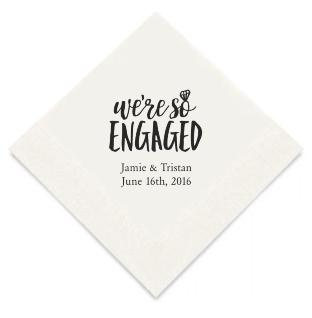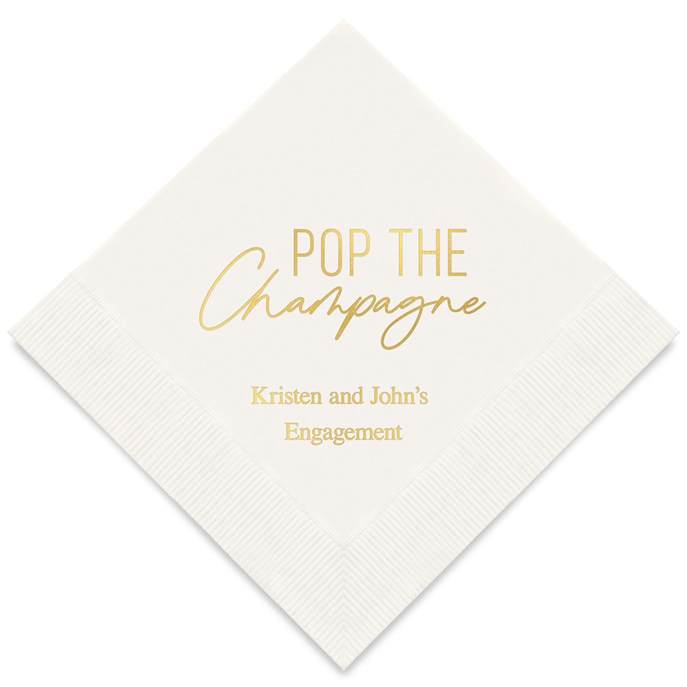Personalised Foil Printed Paper Napkins – Pop The Champagne, Personalised Foil Printed Paper Napkins – We’re So Engaged