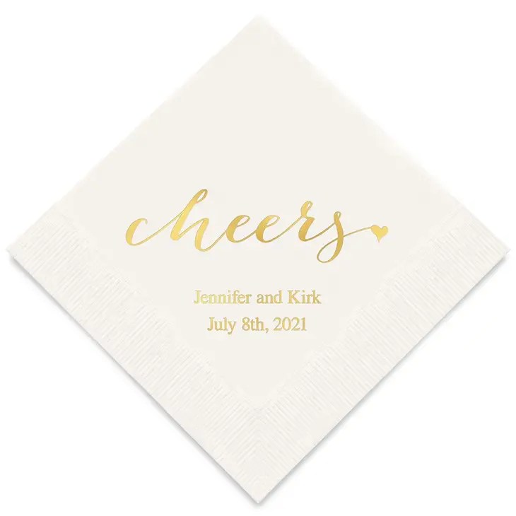 Personalised Foil Printed Paper Napkins – I Do, Personalised Foil Printed Paper Napkins – Cheers