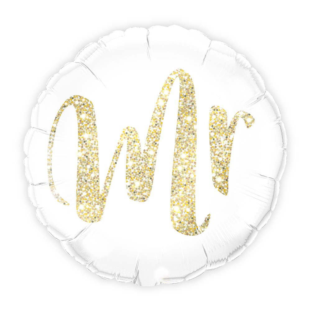 Mylar Foil Helium Party Balloon Wedding Decoration – White With Gold Mr. Glitter, Mylar Foil Helium Party Balloon Wedding Decoration – White And Gold Love Glitter Heart, Mylar Foil Helium Party Balloon Wedding Decoration – White With Gold Mrs. Glitter