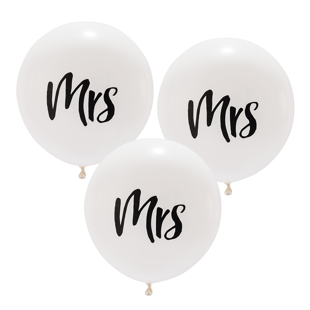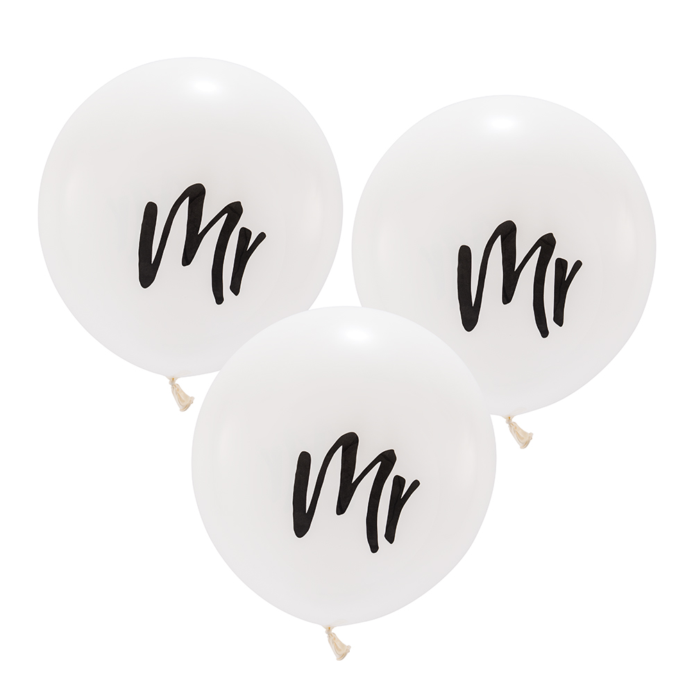 Large 17″ White Round Wedding Balloons – Mr – Set Of 3, Large 17″ White Round Wedding Balloons – Mrs – Set Of 3