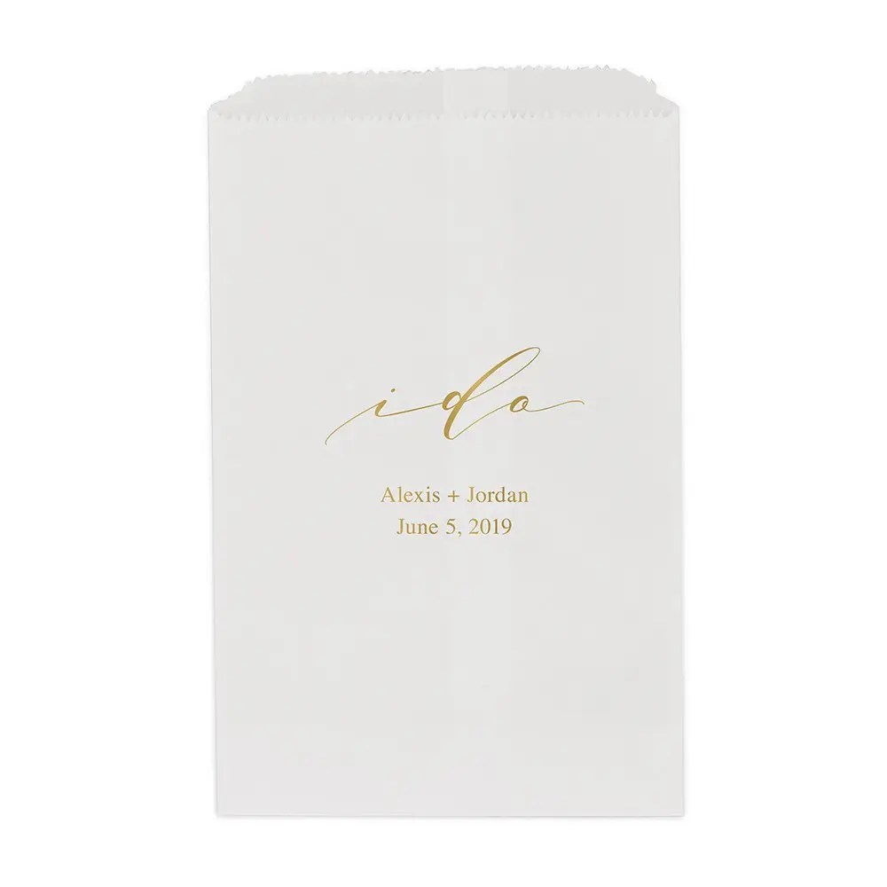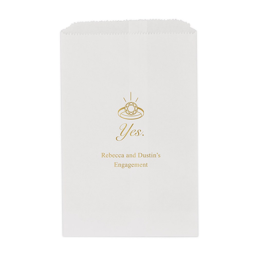 Yes (to The Ring) Flat Paper Goodie Bag, Love Wreath Block Bottom Gusset Paper Goodie Bags, I Do Flat Paper Goodie Bag