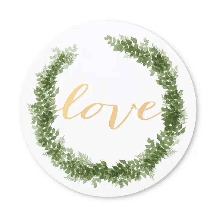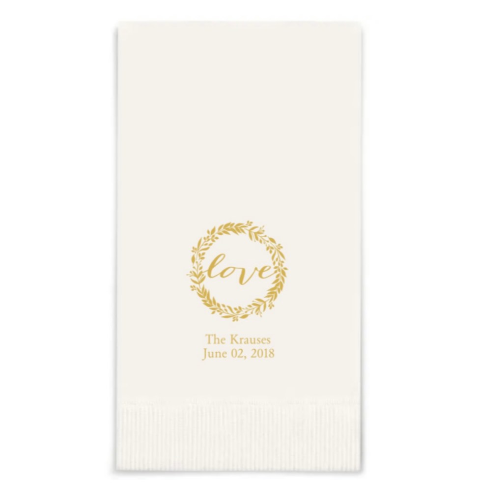 Getting engaged? Love! Washing dishes? Maybe not so much…! Treat yourselves and your guests to minimal clean up with maximum elegance with the full set of Love Wreath party-ware. This kit includes plates in two sizes and two designs, golden paper cups, and a stack of foil-printed napkins.