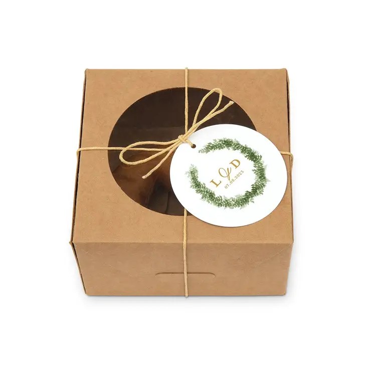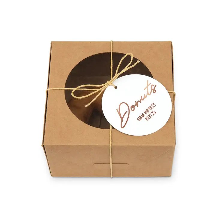 Custom Kraft Donut Favor Box with Clear Window – Love Wreath Initial – Set of 10, Custom Kraft Donut Favor Box with Clear Window – Donuts – Set of 10
