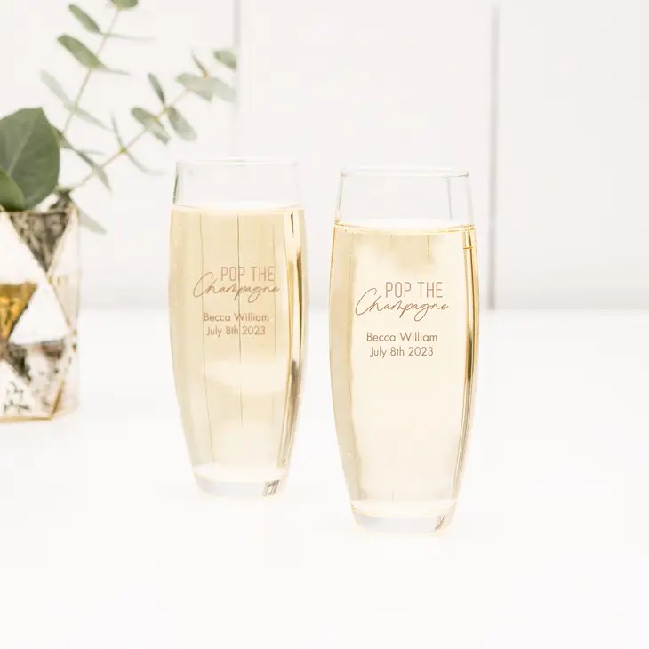 Personalised Stemless Toasting Champagne Flute Wedding Favour Gift – Engagement Party, Personalised Stemless Toasting Champagne Flute Wedding Favour Gift – Bridal Shower