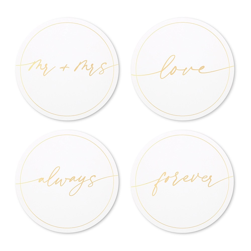 Round Paper Drink Coasters – Love Wreath – Set Of 12, Round Paper Drink Coasters – Love Wreath – Set Of 12, Diamond Ring Shaped Paper Drink Coasters – She Said Yes – Set Of 12