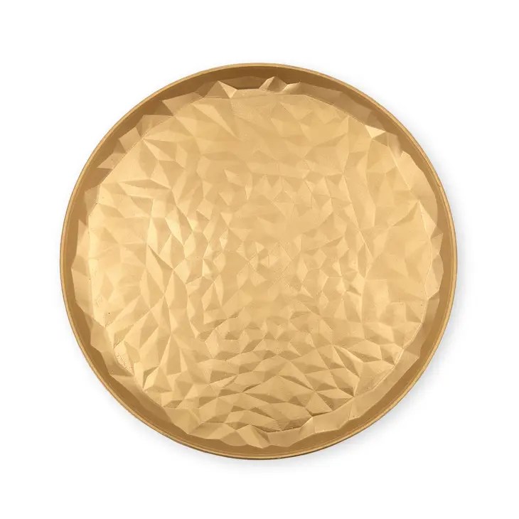 Round Gold Wood Decorative Coffee Table Trays – Medium – Set of 2, Round Gold Wood Decorative Coffee Table Trays – Large – Set of 2