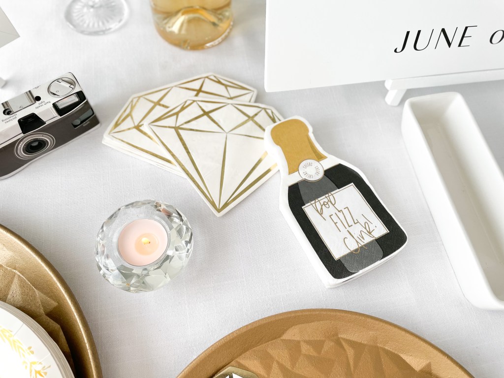 Throw in a few die-cut napkins to add even more personality to the table. We adore the diamond and champagne styles shown here.