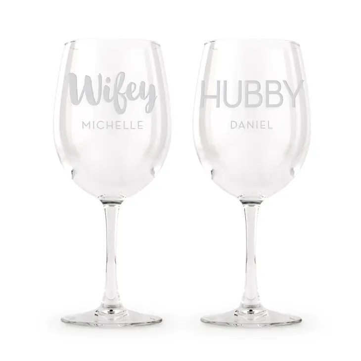 Large Personalised Stemmed Wine Glass Set – Wifey And Hubby Engraving
