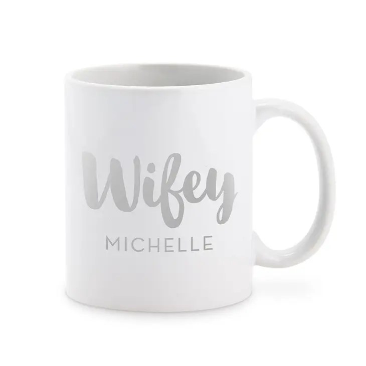 Custom White Ceramic Coffee Mug – Wifey Print, Custom White Ceramic Coffee Mug – Hubby Print