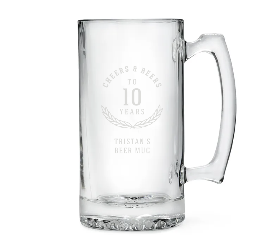 Personalised Large Glass Beer Mug – Cheers And Beers Engraving