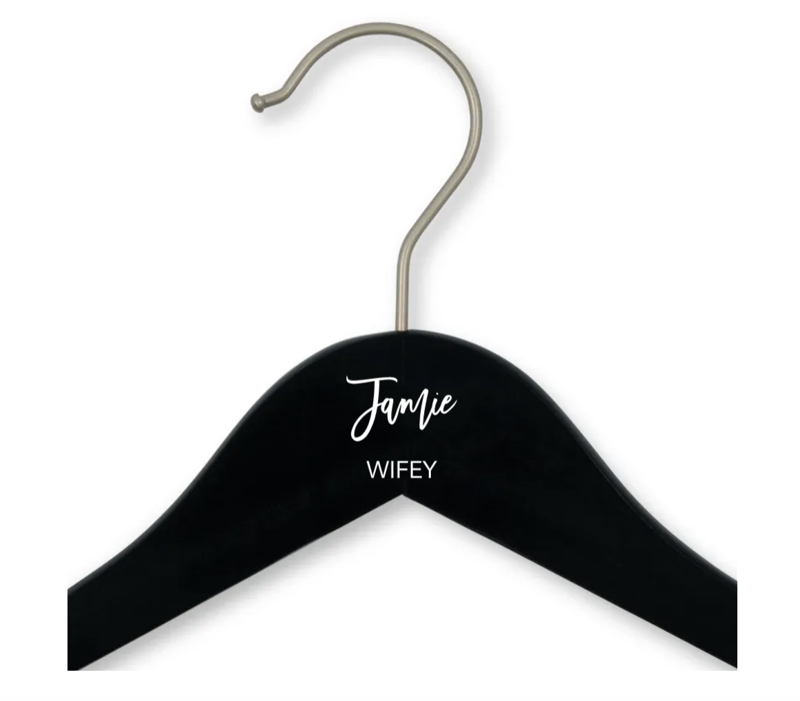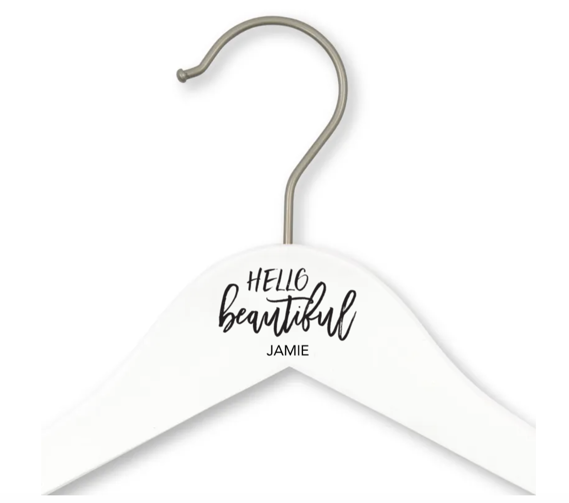 Personalised Wooden Wedding Clothes Hanger- Modern Fairytale Monogram, Personalised Wooden Wedding Clothes Hanger- Calligraphy Name, Personalised Wooden Wedding Clothes Hanger- Hello Beautiful