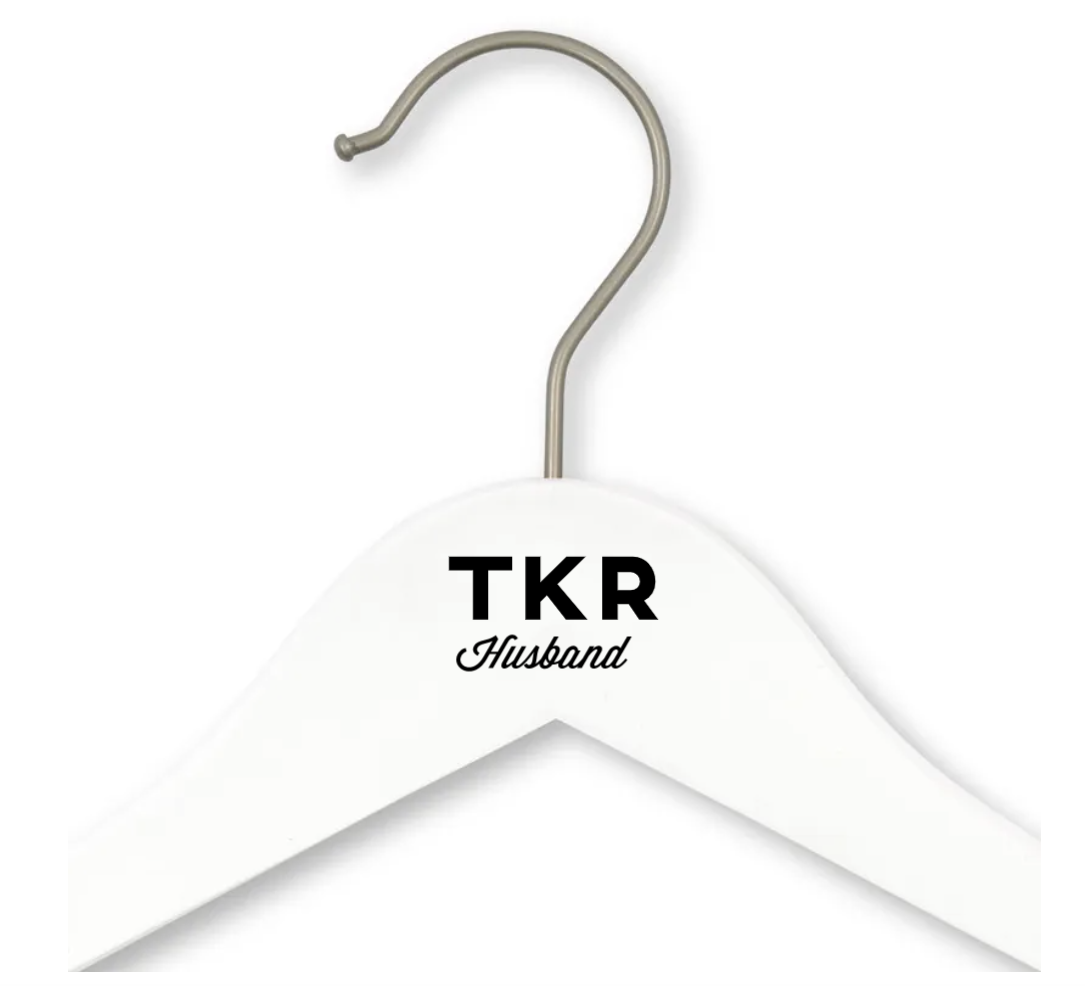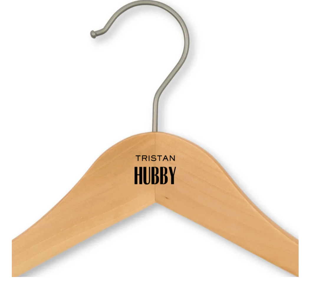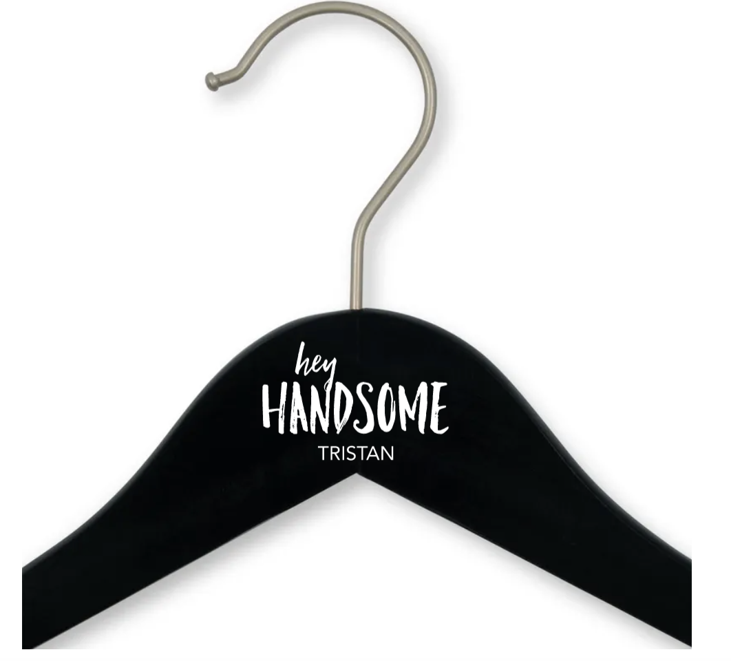 Personalised Wooden Wedding Clothes Hanger- Groom, Personalised Wooden Wedding Clothes Hanger- Hey Handsome, Personalised Wooden Wedding Clothes Hanger- Bold Monogram