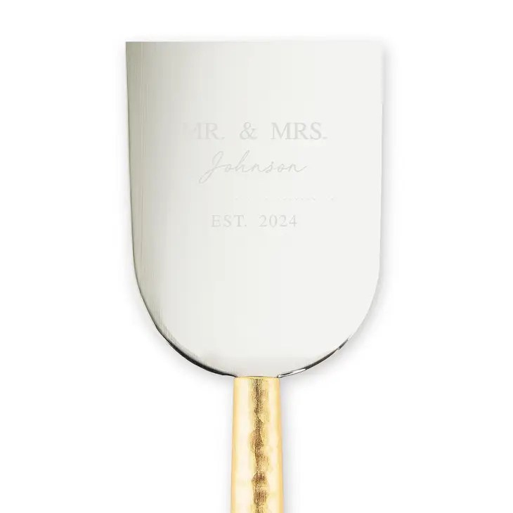 Custom Engraved 3-Piece Gold Handled Cheese Knife Set – Signature Script, Custom Engraved 3-Piece Gold Handled Cheese Knife Set – Newlyweds