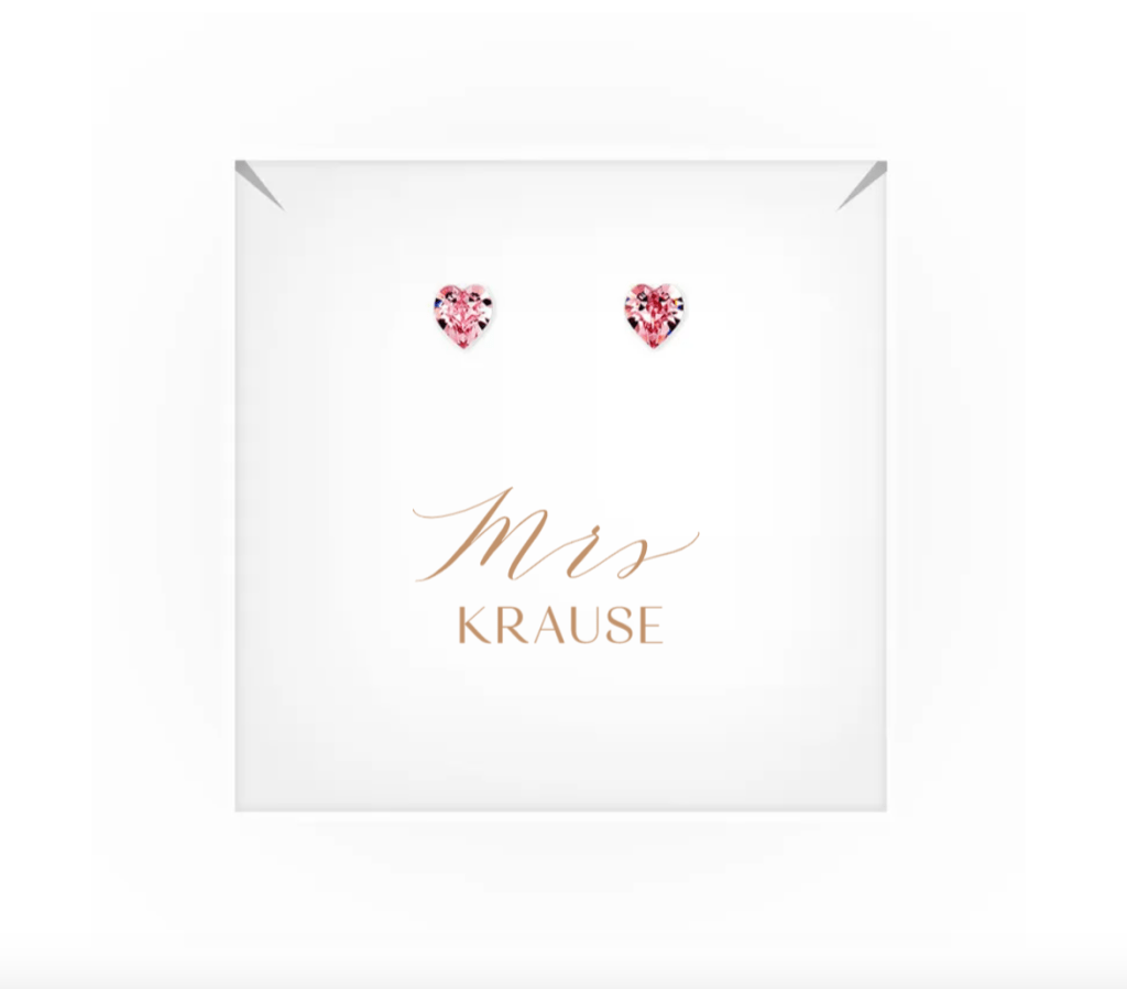 Swarovski Crystal Heart Stud Earrings – Mrs, Swarovski Crystal Heart Stud Earrings – Mother-In-Law Thank You, Swarovski Crystal Heart Stud Earrings – Cursive
