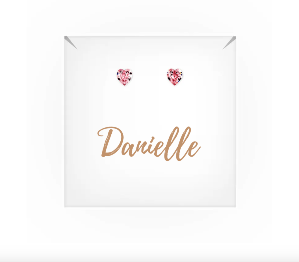 5 years into wedded bliss will still have it’s ‘honeymoon’ moments, but overall will feel more relaxed, and settled. That’s why we chose some fun pink pieces for her, like these heart-shaped studs.