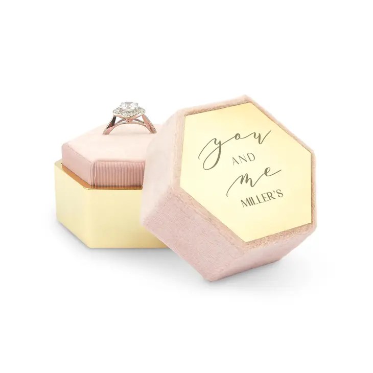 Personalized Velvet Hexagon Wedding Ring Box – You and Me