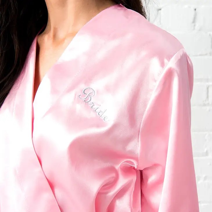 Women’s Personalized Embroidered Satin Robe With Pockets – Light Pink, Women’s Personalized Satin Robe With Pockets – Blush Pink