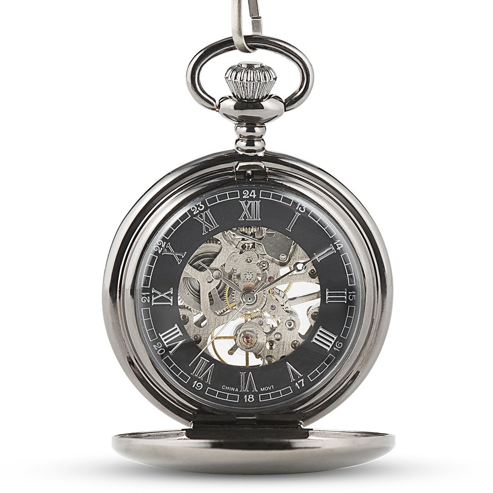 Personalised Gunmetal Mechanical Pocket Watch & Fob – Traditional Monogram