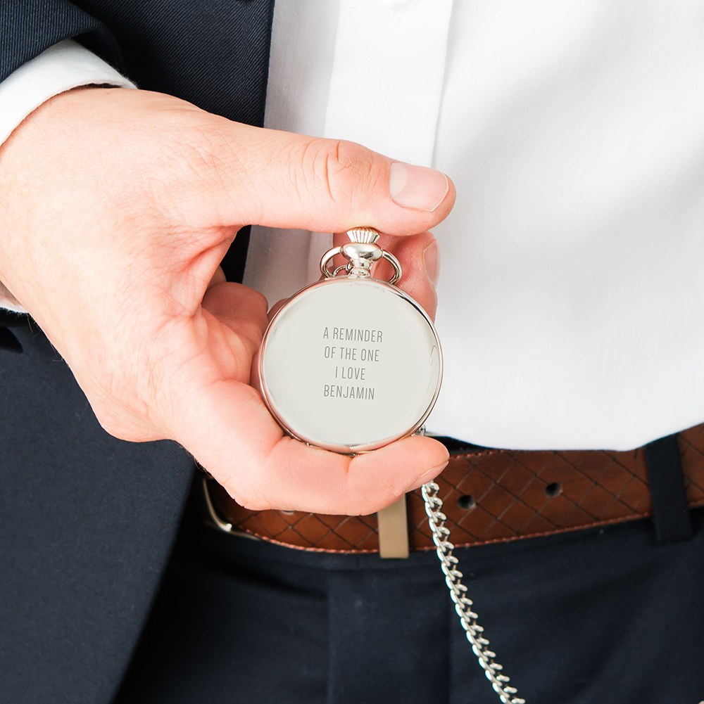 Personalised Silver Mechanical Pocket Watch & Fob – Modern Groomsman