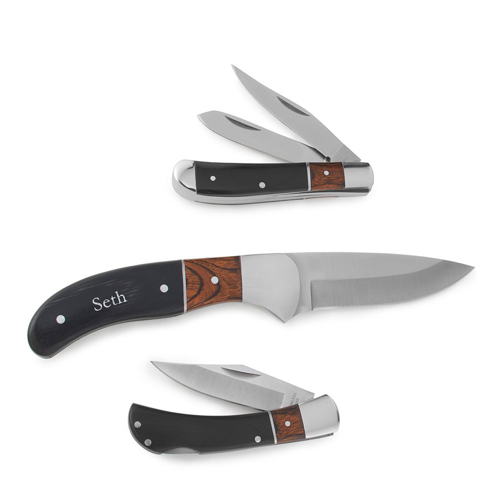 Personalised Wood Inlayed Handle Knife Set – Monogram Engraved