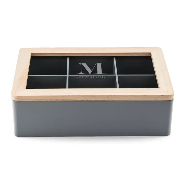 Wooden Keepsake Box With Glass Lid – Initial Monogram, Wooden Keepsake Box With Glass Lid – Bistro Bliss Text